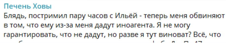 Вот так вот илья...надо было принять сторону малюток когда они хотели отменить хованского, не было бы проклятья, и не было бы уебана сегодня на стриме который подвел под статейку но это говно давно выжидало момента откусить руку