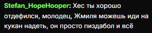 >>26238673 Он позвал его как человека с экспертизой по политике США и предупредил чтобы никаких хохлов и СВО, пытался прогреть на то чтобы дать заднюю и предлагал ему помощь в разбане донатилок если он перестанет заниматься хуйнёй. По такой логике он и зетный потому что Жмиль был у него на стриме в НГ.
