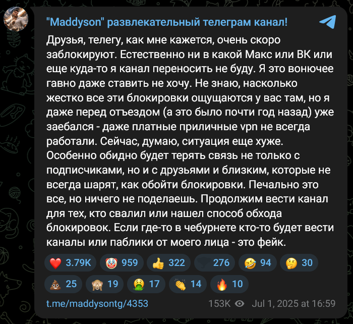 Но в целом пробитие идет на ура - новые цены в магазинах, новые тарифы жкх, новые налоги, новые блокировки. «Хотите как в 90-е?» уже не актуально. Видимо, теперь «Хотите как в Иране?».