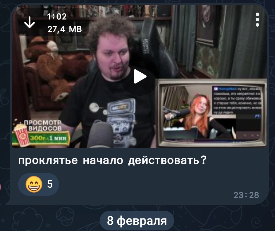 >>26257533 (OP) такой угар, ей зафорсили, что ее прокляли, хотя в том видосе самого прокляться нет, но теперь точно будет, если конечно кому-то будет не лень тащить этот клип ховану(я лично не стану, как раз по этой причине, это надо на кике у него подписку покупать или донатить с ссылкой видос)