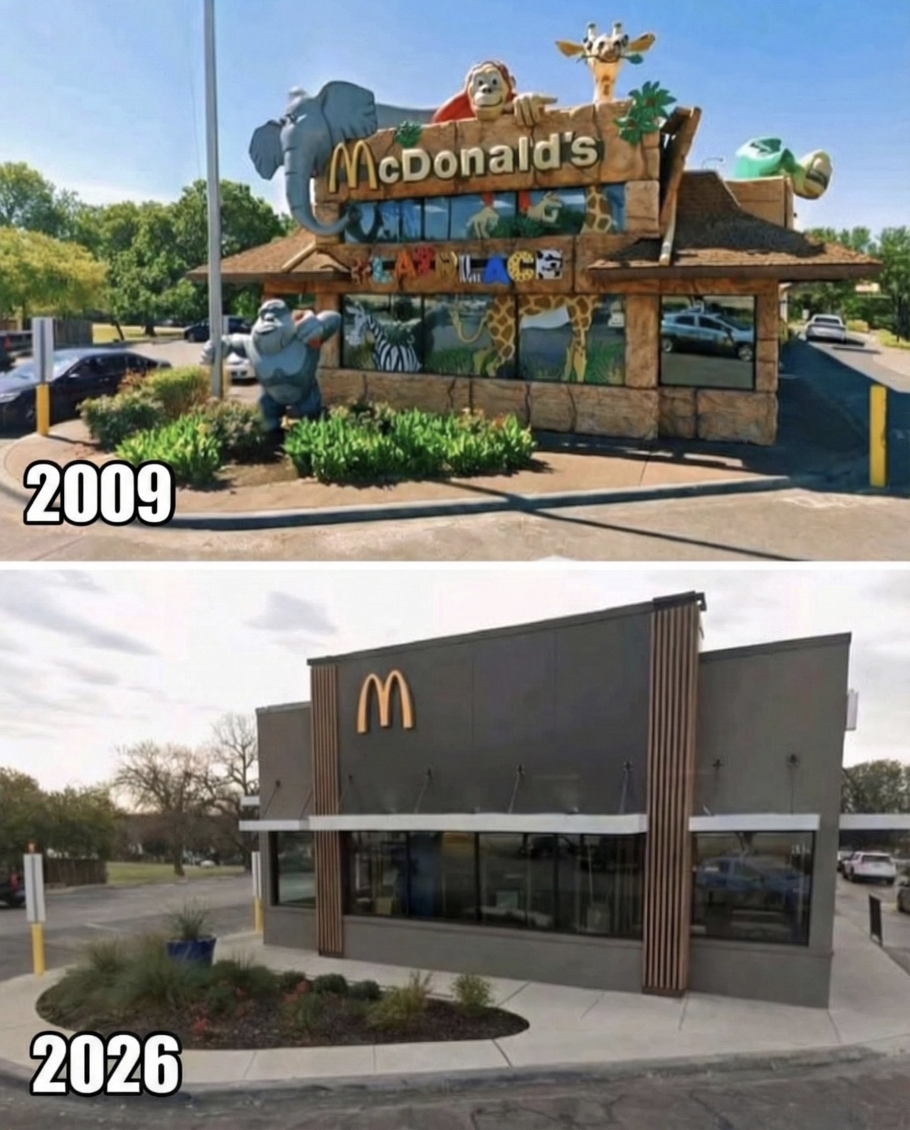 >>26257813 >>26257813 Я знаю, что это часть стратегии по отказу от ориентации на детскую аудиторию, потому что макдак раньше всегда продвигал себя как семейная закусочная, но как раз где-то в конце нулевых суд запретил им навязывать свою рекламу детям, потому что их еда жирная и вредная. Но настолько все стандартизировать это неправильно. У конкретного звериного макдака можно было отреставрировать фасад в сторону менее пестрого и взрослого, но оставить суть.