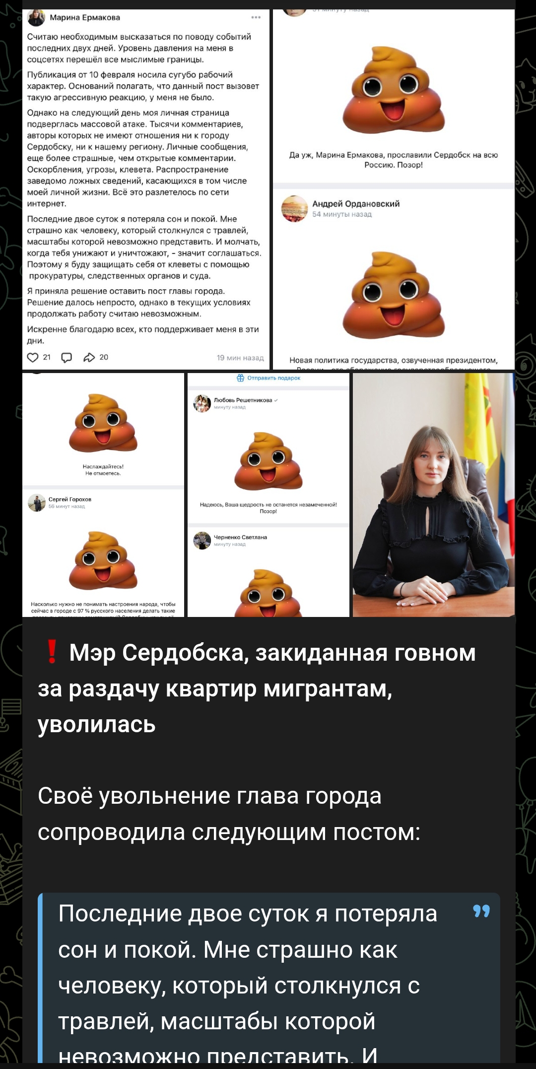 >>26260221 уволилась от невероятной травли от четырёх какашек (в следующем году в думе или совете федерации)