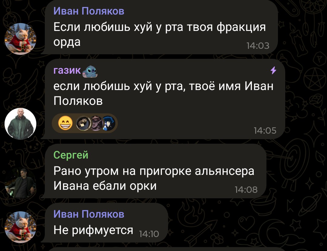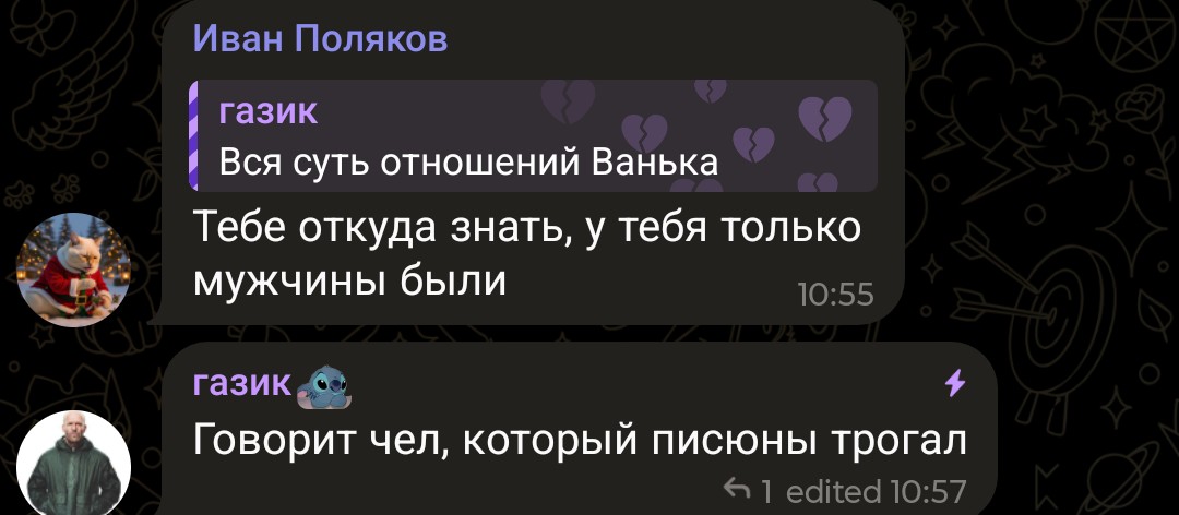 На ночь 14 февраля она приехала к нему в красноярск, где они няшились, рисовали рисунок, разукрашивали, мб еще не ебались но поляков ее засасывал, она дефала его в конфе потому что влюбилась. Понимаешь карл? На ночь 14 февраля она к нему приехала и была потом в хорошем настроении. Она реально в поляка влюблена, вот что понял.