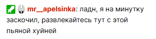 >>26276648 >Перестав быть подсосом и пиявкой чмодья, она в интернете станет буквально никем Странное суждение, учитывая, что Мэд не в самом прайме, коллабит с другими подсосами, но их вообще не упоминают на тех ресурсах, где упоминают её. И вот, допустим, её сообщение выше сразу после отруба - это что, прибавляет ей авторитета в глазах наблюдателей? Попрошайничество игровой валюты?