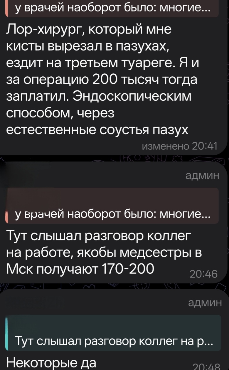 попал я в группе на беседу врачей из мск, и немного прихуел от ЗП лям+ (и вспомнился поляк, нахуй он в эту дыру приехал), даже медсестры только с вуза 200 получают хэхе