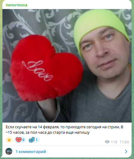или просто ощущение что я обязан задонатить и я пропускал из-за этого значимые стримы на 8 марта, на 14 февраля, на 23 февраля, на НГ, на ДР стрим, мог делать вид что у меня дела, я гуляю, нет дома, но на самом смотрел стрим молча из приватной вкладки, чтобы не донатить и не чувствовать что я должен. в такие стримы ты будто обязан задонатить, неприятное чувство.