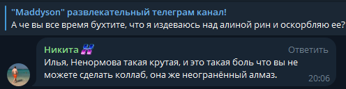 >>26276747 Касаемо этого сообщения нет, но его чмодьедауны ебаные, которые последние пару месяцев стали занюхивать активно ее стримы, делают клипы с ней и несут их в предложки на разные тг каналы, раздел комментариев основного канала чмодья, его фан каналы, островский и т.д.