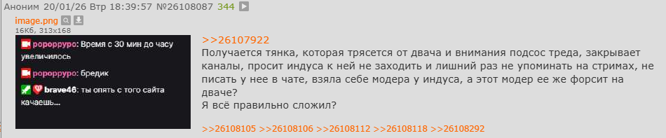 Больше всего в этой ситуации меня забавляют донаты на которые она вообще не обращает внимание Чемодауну там чето пишут, кто то там развелся, кто то женился, кому то та изменили и т.д. просто ноль внимания ни спасибо ни пошел нахуй даже А они все донатят и донатят