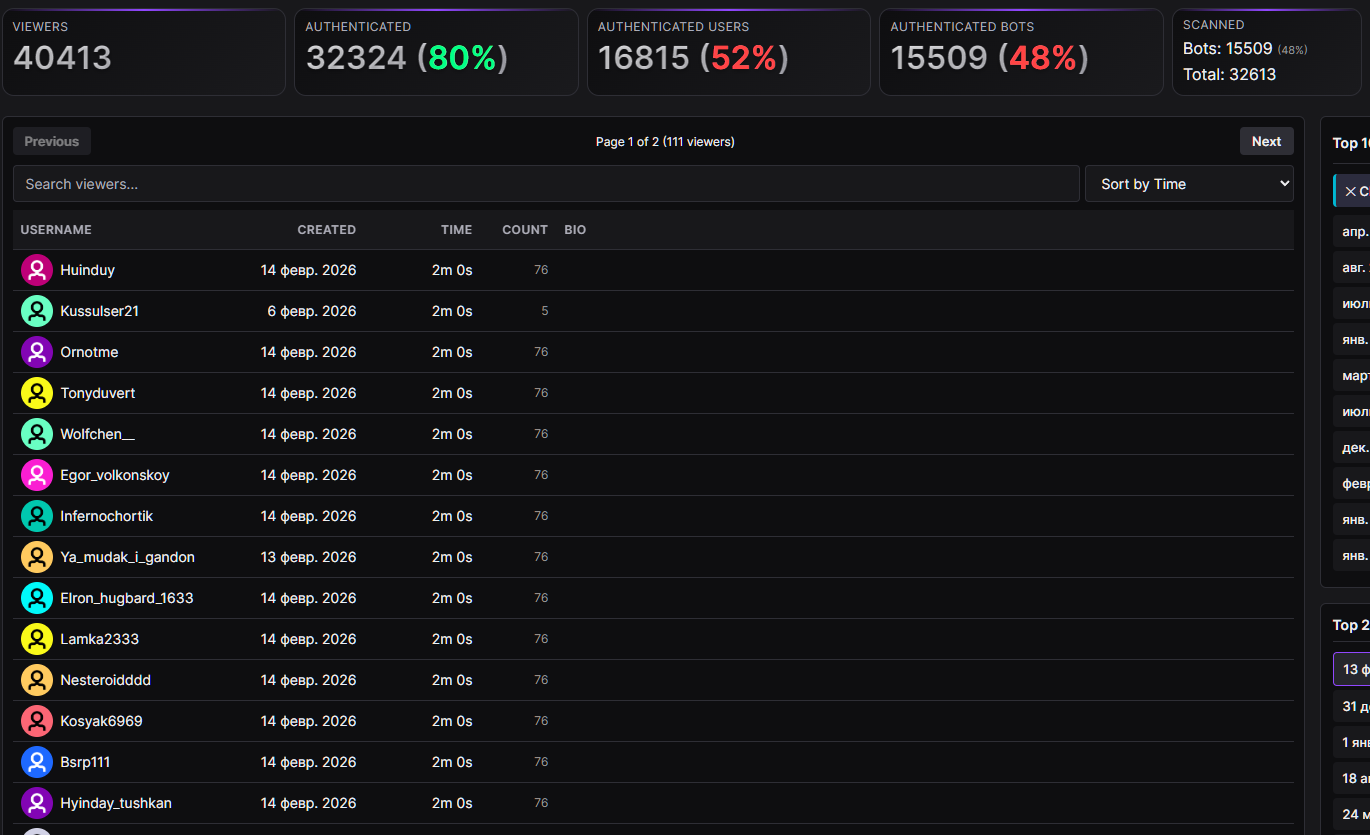 В этот раз боты настоящие зрители хоть авторизированные?