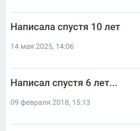 >>26280127 мне написала баба с которой я встречался в 2011 году, она умудрилась найти мой номер через кента с которым я тоже несколько лет уже не общался я ничего не ответил и удалил её нахуй она вышла замуж сразу после того как мы разошлись и развелась спустя 2 года родив сына, дальше хз чо там было мне похуй