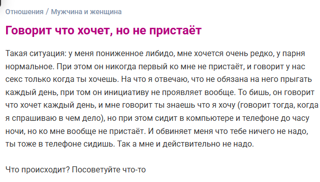 Написал на СЗ мужчина 50 лет, мне 36, увидел мое фото и я очень ему понравилась, он на вид на троечку, т.е. уже виден возраст, у него бизнес в паре городов, ищет любимую женщину по его словам, на фото у него живот такой немаленький, в теле, фото с моря много и т.д. мне интересно было пообщаться с ним, т.к. я с 50 летними еще не общалась, мне кажется они для меня староваты, но к удивлению общение полилось рекой, он разведен давно, 2 детей взрослых, живет один...зовет на встречу... И еще момент..когда общались, то я намеком дала понять, что мне важно чтобы мужчина финансово помогал женщине, на что он ответил, что у него такого не было, чтобы он давал женщине деньги и жил он только со своей женой! Вот скажите нормально ли да, что 50 летний в теле мужик хочет себе женщину моложе его на 14 лет, красивую, с хорошей фигурой, нерожавшую, без проблем, спать с ней но при этом ей не давать денег и даже ее не содержать? Что они о себе возомнили? PS: также мне написал потом что "я понял тебе главное деньги" Я ничего не ответила. Спорить не хочу. Просто обалдеваю над такими мужиками.