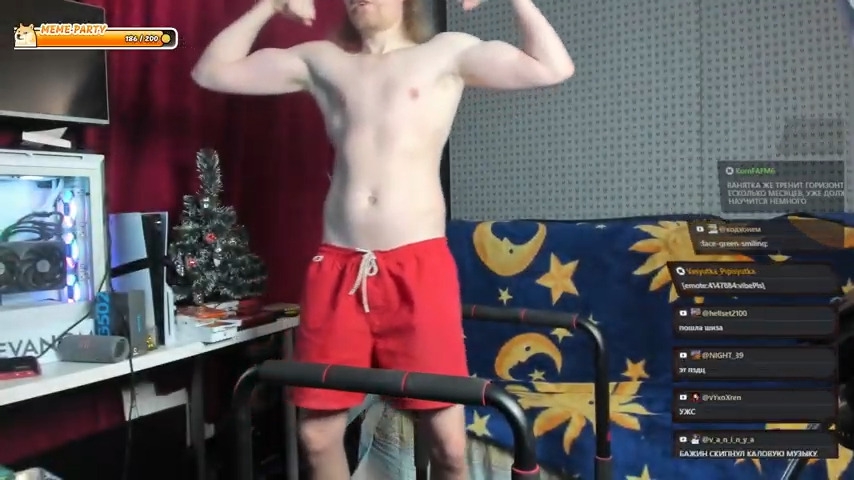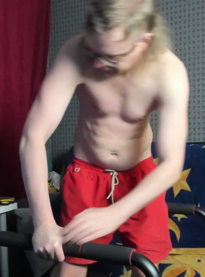 А, кажется я понял. Этот даун насмотрелся всяких зарубежных фитнес блохеров, которые показывают разные приемы в калистенике. Плешивая бабка только забыла, что чтобы выполнять те или иные элементы нужен мышечный каркас, и тестестерон. У козлятины нет, ни того, ни другого