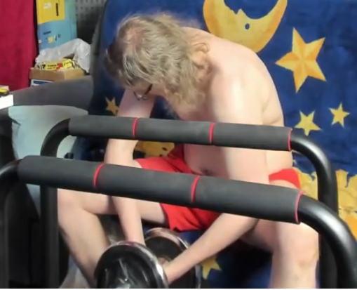 Я больше ору с того, что он даже с НЕСКОЛЬКИМИ резинками не может подтянутся. То есть, даже с компенсаций веса нет никакой координации мышцы.