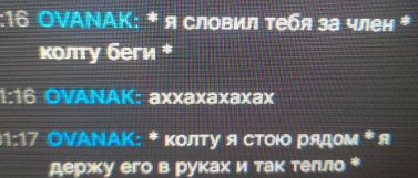 Так а че молчим что чухня в тильте все сидит еще сказала что номанз вчера что ли перепил и нес какую то не приятную хрень для нее. Но вот уточнять что именно он говорил чуханка не стала хотя ее спросили в чате.