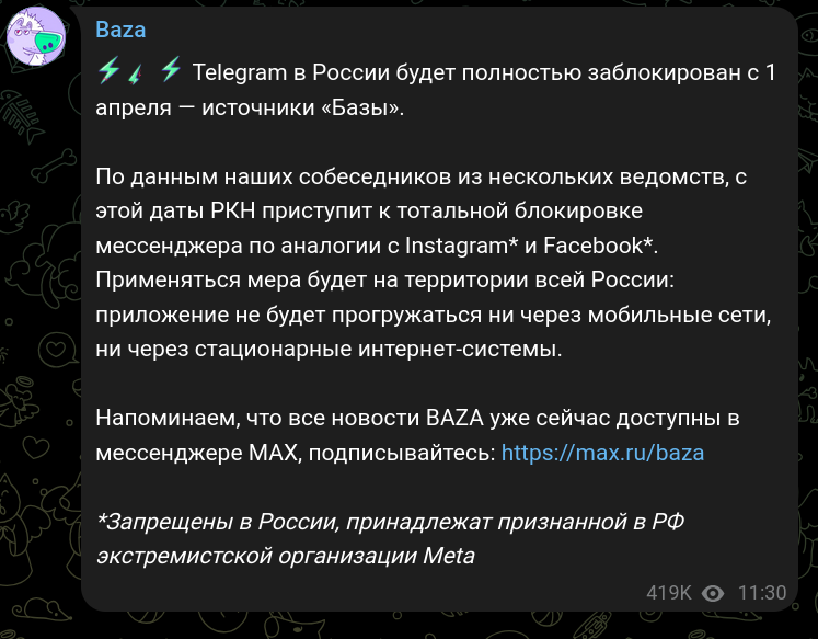 >>26296911 Вазап и вайбер это вообще не то, это просто мессенджеры, макс же даже до их уровня не дотягивает, это какая-то бета версия. Убивать телеграм это большая глупость, тем более дуров сотрудничал с органами. Вся нечисть, с которой они пытаются бороться, так и будет сидеть в тг, только через обходняки