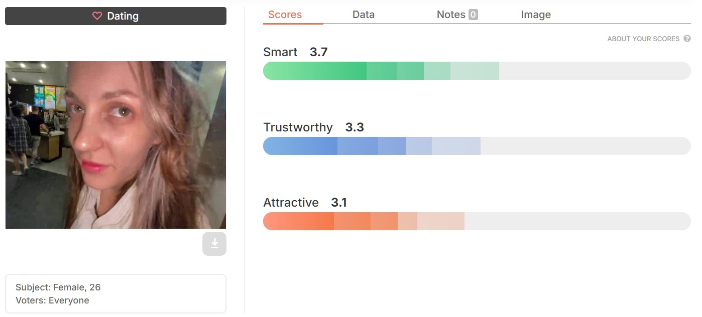 >>26299304 Просто заливаешь фото и её реальные люди оценивают