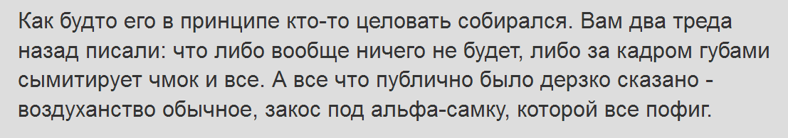 Да черт с ним с поцелуем, это максимально ожидаемо и предсказуемо, несмотря на весь ее пиздеж о том как изи она это сделает.