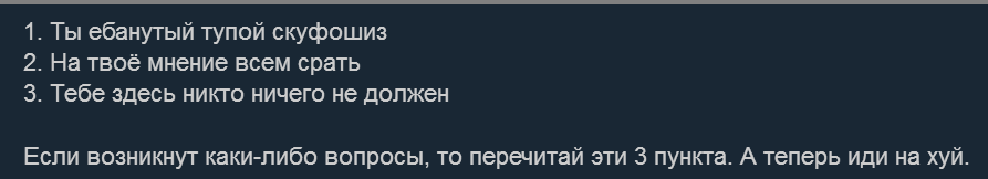 Скуф-охранитель на аватаркобляди опять в двух тредах на радостях высрался про чемоданов. Дурень, про скам было заранее известно. И про подсосы и про "я не люблю ауки" (теперь полюбила). Белье свое просуши, мочевой фантазер.