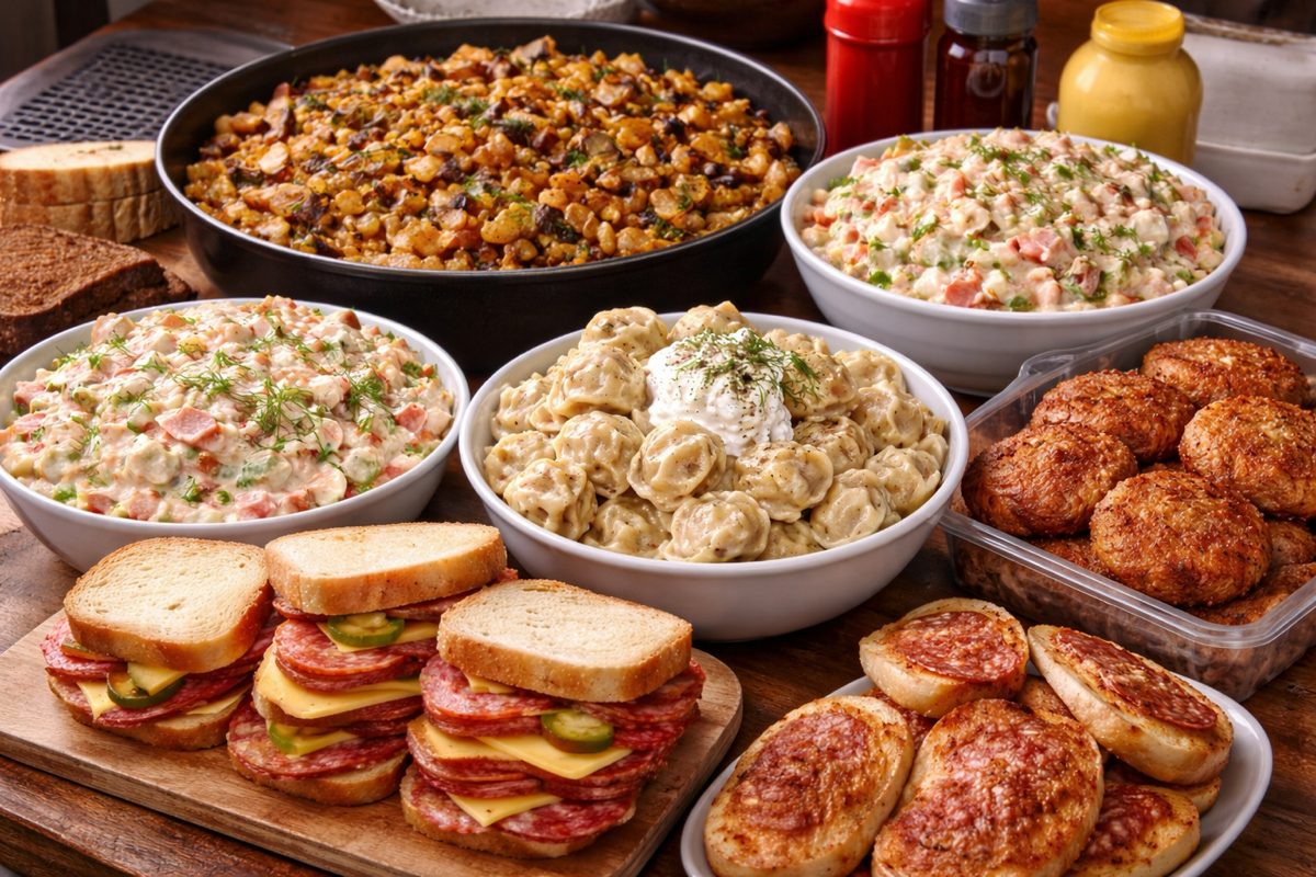 >>26309678 - большая сковорода жареной картошки с луком и грибами - несколько толстых бутербродов с копбасой и сыром - тазик пельменей посыпаных перцем и политых сметаной - два тазика салата щедро сдобренных майонезом - упаковка котлет