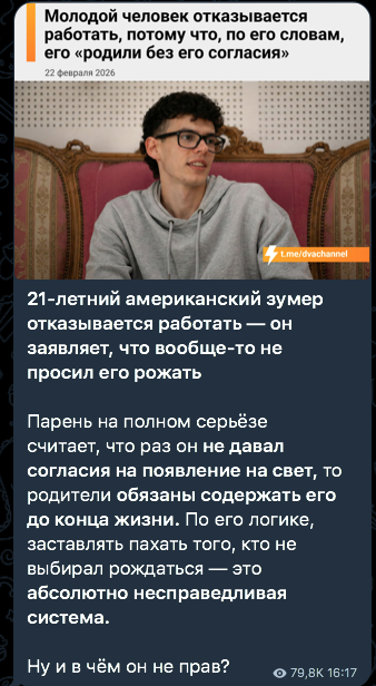 >>26334308 Ты пиздец чсв-шник. У тебя всё нытье это как хотелось бы ТЕБЕ. То есть баба должна будет подстраиваться под тебя, под твои хотелки, кал твой ютубный смотреть, путешествовать куда ты хочешь и т.д. А если баба тебе скажет что детей хочет, ты её дропнешь сразу же?