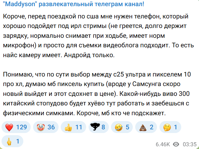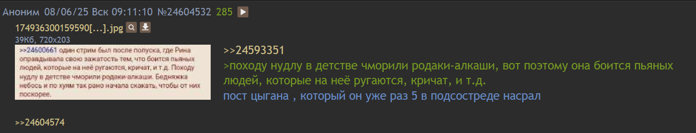 >>26333842 >Пахомов же вроде пруфнутый шиз, там вообще ей повезло, что не пырнул или еще че не сделал. так этот мб такой же шизик, просто ты его справку не видел >Был еще помню у стримерши смородиновой какой-то казах, который ею вайпал весь фаг и чето там билеты даже в питер покупал к ней ехать. так этот казах никуда не делся. он прост нашел себе новый объект симпования в лице какой-то 30 лвл мелкостримерши и переехал в лох тред