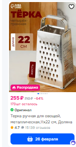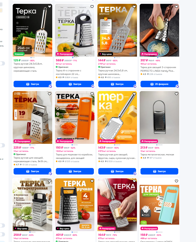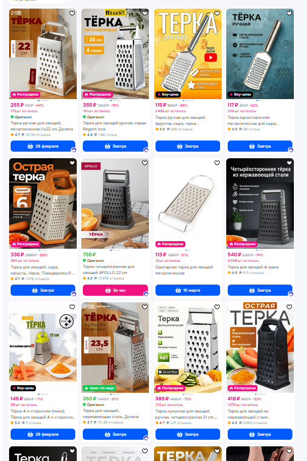 я тоже не понял перемоги от додстера теркой. ну это ваще пиздец уже. ладно там посуда, белье постельное, кухонные гарнитуры мебель. но терка? за 500 рублей? ты дебил ваще? сырок
