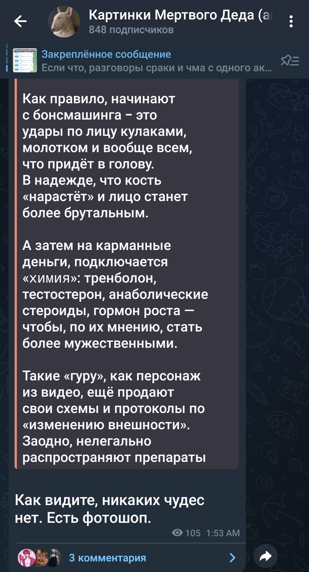 Пафаны-пафансики, я ужо месяц не заходил сюды. Как вы тут, маленькие? Тогтик чтите? Мазик грызёте? Шо тама по новостям от Шнобиля? Не ебут еёную "чисто-выбрито" али как?