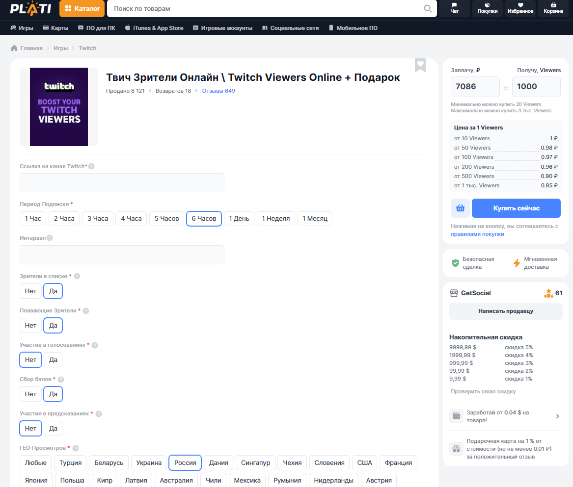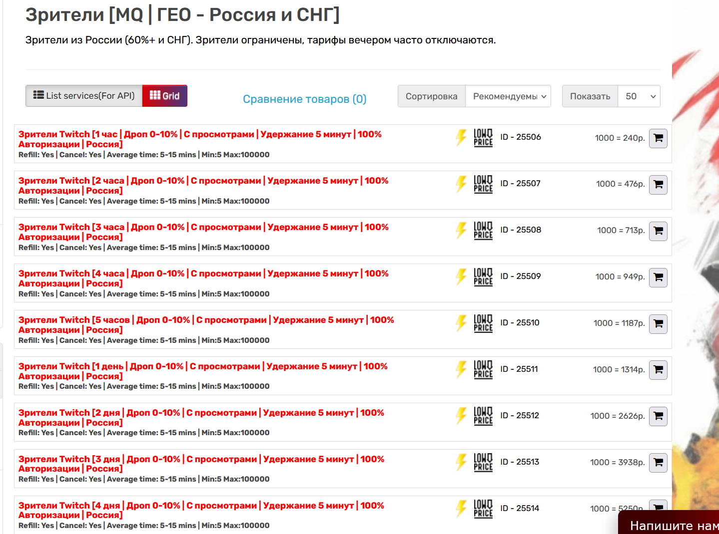 >>26350835 с чего ты взял что он закупался по этим ссылкам? ты даже матчасть не знаешь нихуя, пикрил самый крупный сайт где все закупаются там тебе каких хочешь ботов подгонят >Зрители ограничены, тарифы вечером часто отключаются. а так на твой вопрос вот даже у них есть, т.к. боты с регой и не сильно палящиеся имеют ограниченный ресурс