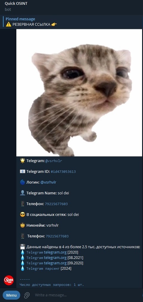 >>26365618 Ебать ты крут... У тебя есть целых 30 рублей, чтобы пробить по айди в телеге... Жалко что даже с этой информацией ты нихуя не сможешь сделать, так как тебя сразу опустят, степашка