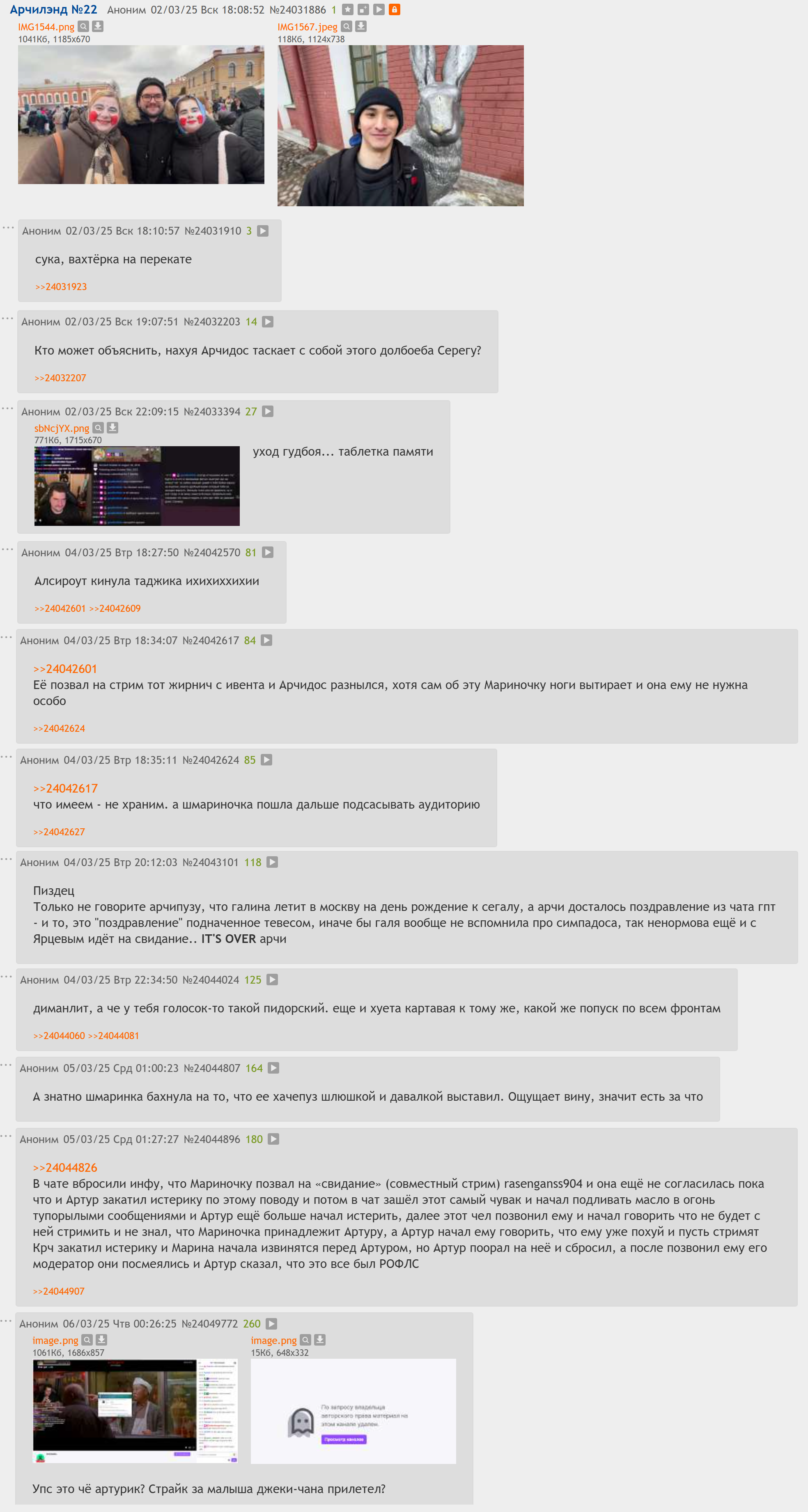 пиздец и ведь караченская дала добро на этот завоз, это ж ваще не смешно было. а она вроде как выступает в роли морального камертона, поэтому не общается с арчидосом "тк знает про него всякое"