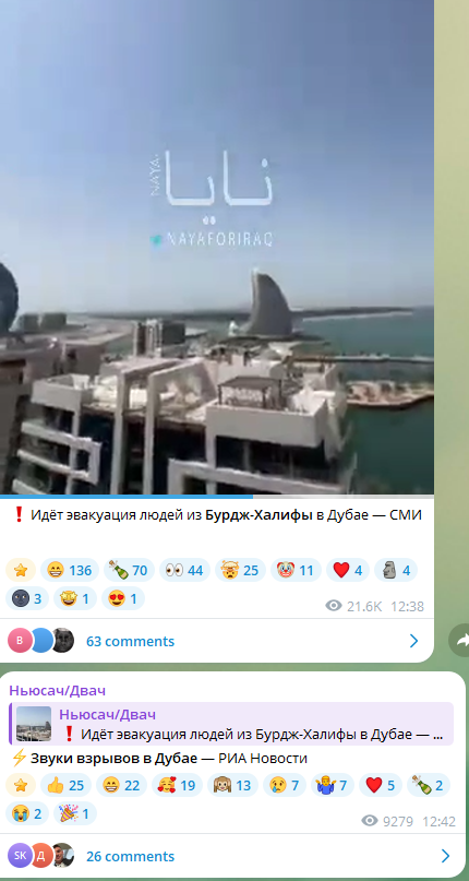 ⚡️Взрывы в Абу-Даби, ОАЭ. Помимо этого иранские баллистические ракеты поразили авиабазу Аль-Дхафра в 30км от Абу-Даби Поздняков. Подписаться
