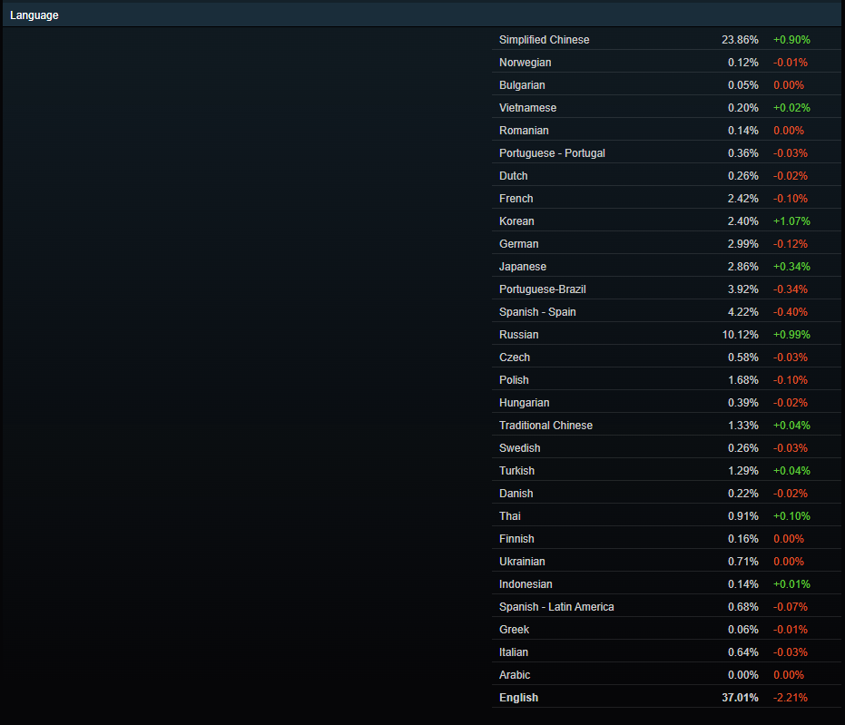 более 10% стим пользователей это р. в то время как англоговорящих 37% (по всему миру). что говорит о весьма большой доле ру говорящих. но что мы видим, когда выпускают очередную игру локализированную на 10+ языков? на примере калаут 4: озвучку сделали для немцев (3%), французов (лол их даже в статистике нет, настолько ничтожны), итальянцев (0,6% с хуем), японцев (менее 3%). при том что р. любят всякую пост-апо парашу и считаются одной из основных ЦА. и это все задолго до гойды. подобных игр уйма, это просто пример.