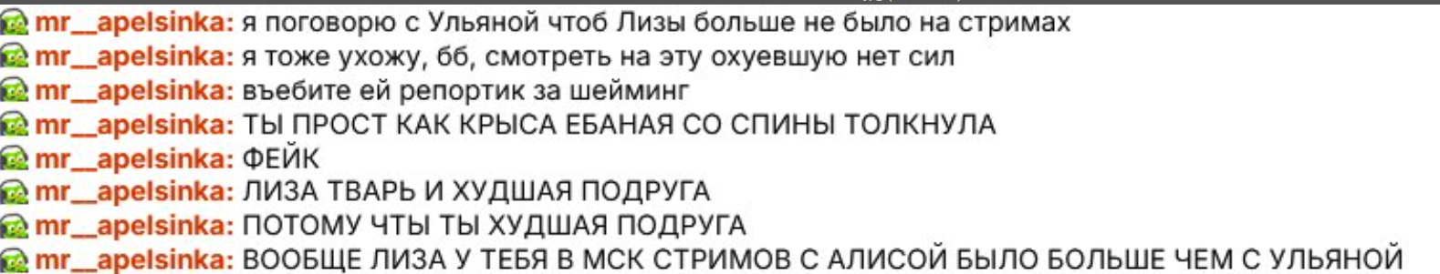 >>26391874 Суть претензий - Лору после речки и квартирного стрима, сказал, что Шиша несет хуйню и не зовите ее больше. Потом позвал баб в сауну, а они не позвали Шишу. ПРЕДАТЕЛЬСТВО.