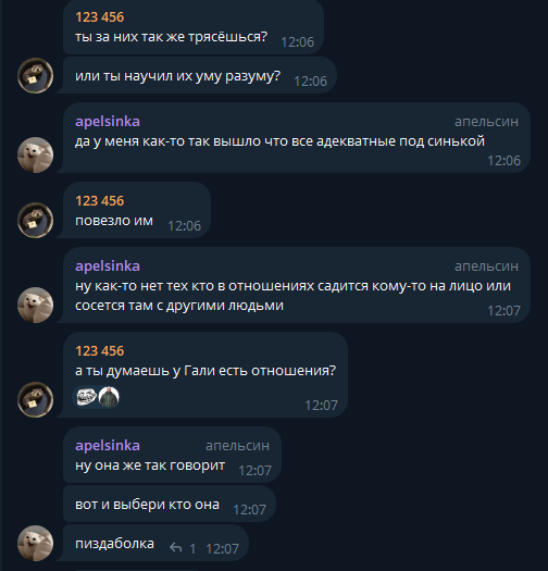 Да и хули там облапанная она по твоему целка чтоли или че? Ей он блять понравился внезапно понимаешь? ПОНРАВИЛСЯ АНДЕСТЕНД, галюсик изголодалась по нормальным парням после инцелья которые к ней за писиком в деревню ездили.