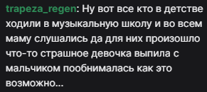 >>26392333 После муз школы люди ненавидят музыку. А телок на концертах сейчас лапают реперы, которые говорить с трудом умеют и уже рифмовать разучились