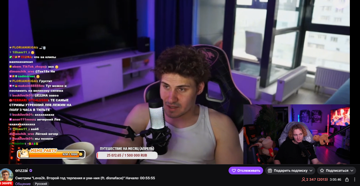 Первый шип за которым я наблюдал, причем с большим интересом. Как-то не застал францию, начал смотреть с польши и всей этий подростковой атмосферой, байками про призраков, когда повысил голос и расстроит ''милашку''. Вся эта неловкость показалась искренней и забавной, никакой особой грязи, просто приятные вайбы дурдомосвских диалогов, внезапного смеха от простого кадра леса в фильме и уточнения что в нём живут грибы, очень подкупало. Дальше на изоляции уже полностью осознал за чем именно я наблюдаю, вот тут уже стало интересно, а не просто забавно. Первые повторяющиеся вкиды по типу ''ой, я не знала, что на изоляции ему нельзя пользоваться телефоном'', подобные сливы личного общения для байта аудитории, хотя казалось бы, всё и началось с Бегемотика в Капусте и тут нечему удивляться, просто картина уже начала играть красками.Бесконечный марафон грязных аукционов, на которых страдали очки её папочки Суслова и так далее. Самый забавный момент за всю эту историю для меня, когда Лев наконец не выдержал и начал впервые вкидывать ''приколы'', от которых его ещё удерживали, в чём я до сих пор убеждён, искренние к ней, добрые чувства, да, я не хочу сказать, что речь идёт о какой-то любви, влюбленности, но не заметить, что что-то было могла лишь какая-нибудь Гурцая. Если не ошибаюсь, как раз после трагической ситуации с невинными очками, он и зашёл к ней на стрим со своими первыми фрэндз вид бенефитс предложениями, реакция была бесценна, наверное даже сильнее той, на которую он расчитывал, абсолютная растерянность, паника с обматыванием наушников вокруг шеи, слишком неожиданная смена в отношении, остановили это только крупные донаты адресованные Льву, но летящие к ней на стрим. Он тут же вышел, дав сухой комментарий, как и началось самое забавное. Богданского просто порвало , он начал спамить ей в чат клип этого комментария, истерически разрываясь от смеха, дальше взаимное откидывание шуток, по типу- ''ебка по дружбе не подразумеваем общий бюджет'', тут Лев просто переиграл своим вкидом, так, что истинная сущность повалила наружу, после этого уже особо себя не ограничивал, но видимо всё же понравилась достаточно, чтобы на что-то расчитывать от всей этой грязи. Концовка неплохая - Выходя на человека с бэкграундом лоха, вышли на еще более циничного и расчетливого человека, лохом оказался некий пудель, а разведенный на чувства не он сам, а некая польская милашка, которая теперь и сама не понимает, что с этим делать, но хотяб с профитами в кармане и цифрой вьюверов под стримом. Но ничего, деваться парочке польских авантюристов друг от друга некуда, помирятся, может даже переформатируют медийные отношения, потом для галочки публично расстанутся и пойдут искать новую цель, могу пожелать им только успехов, а Льву почаще отдыхать в Турции с теми, кто ему приглянулся. Ещё стал больше понимать, почему ему самому не стремно от байтов с д, и убеждать себя, что она до сих пор ему нравится. Типо да, ей насрать на него, ничего не нужно, кроме легких байтов и манипуляций на донатик, парочки отбившихся от водопоя зрителей, но тут с их сторон всё честно, ему эмоции, когда действительно одиноко, ей парочка копеек и ап эго. Быть уверенным, что влюблен в того, кто не пытается залезть в душу, наебать и что-то с тебя поиметь(ну в душу то она ему точно не лезет), в конце концов, не так уж и плох