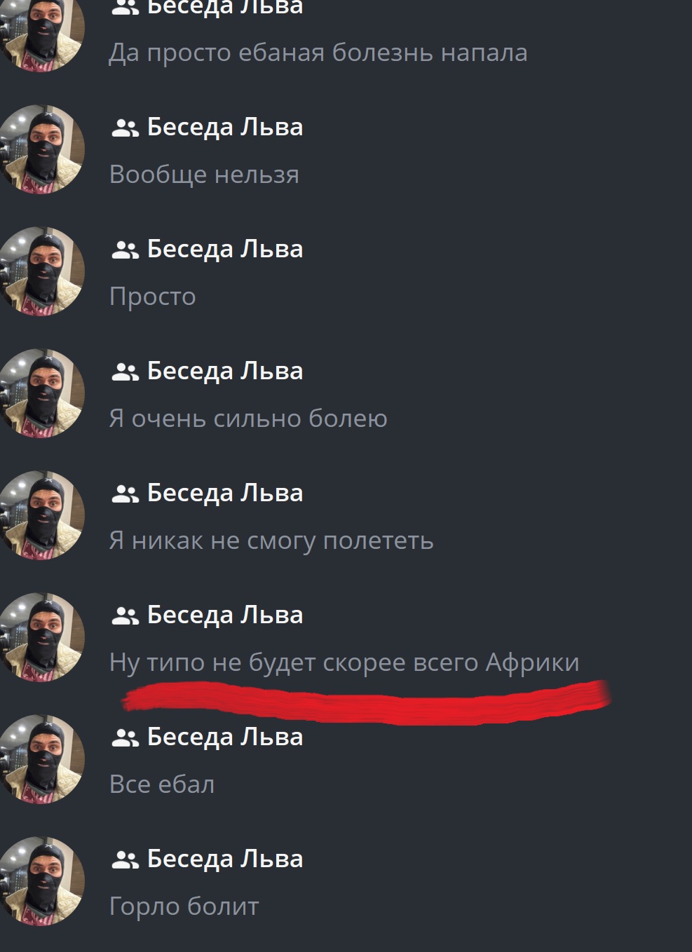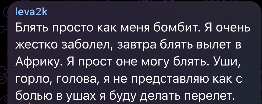 >>26396314 От прививок горло не болит, да тебя может клонить в сон и трещать голова даже слабость но не первое. Скорее всего до додика спустя месяц дошло что его Африку показали другие стирмеры и завоза не будет.
