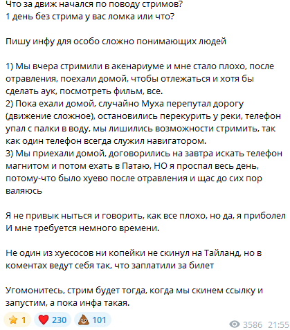 >>26406389 > >денег нет вечное нытье, но на крипте тысячи зелени эмупс Завозы, актерство > >я с дубайской расстался, но не расстался Это не пиздабольство, в вынужден был сказать, чтобы от него отъебались. Да и признался он, насколько знаю в тот же день, когда позвонил. В Токио был стрим. > >кейс таджикистан бельгия Что там было? В Таджикистане не было инета помню > >будет топ мега проект в гараже, но по итогу эмупс Тоже не слышал. Ты и в музыкальную группу поверил и запишешь это в пиздабольство? > >будет мега топ выживач на тайланде, но по итогу эмупс через 2 дня срыгнул домой макароны жевать Форс-мажор был, выше написал несколько причин - заболели, клопы, генератор