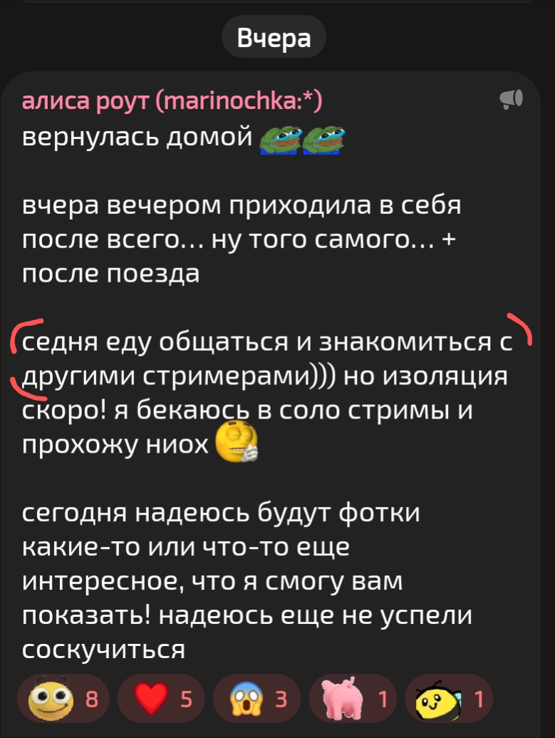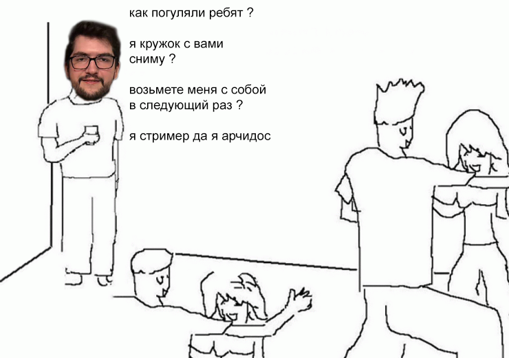 Ребята, это я Арчидос. Отошёл в туалет и решил заглянуть в тредик заодно. Вы поймите, я пришёл посидеть в углу чмошкой за неимением жертв для попуска, пока все остальные насасывают звёздам стриминга и веселятся, чтобы завтра дать возможность вам поцеловать себя в сырные натоптыши и задонатить поздравление на аук! Я же не ради себя это делаю, ради вас любимых зрителей стараюсь, завоз организовываю, хоть и без стрима. Вот кружком поделился даже, а вы ерунду рисуете какую-то, весь вайб пропал, завтра буду грустный на свой день рождения. Зачем вы так?