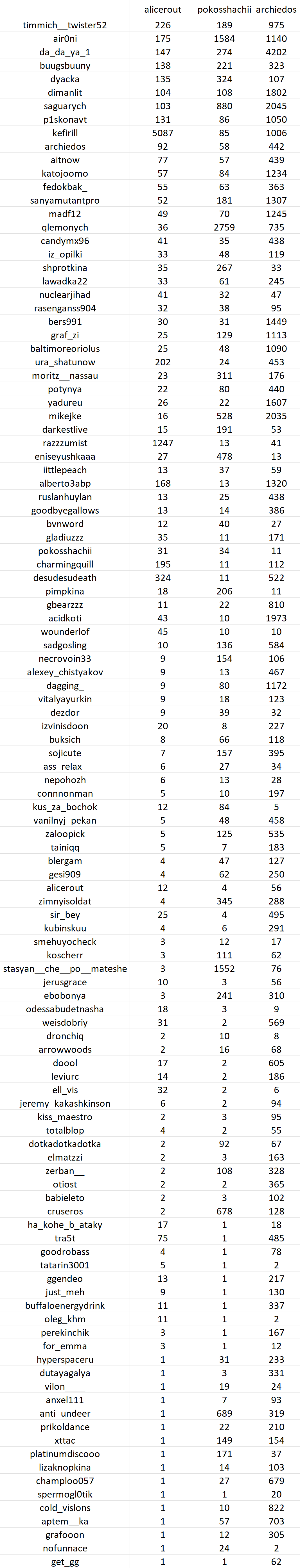 >>26429750 Я пиздел. И поверь, лучше тебе на заставлять меня объяснять почему мариночка самый неудачный проект. Я так понимаю это её симп из этой таблички высрал как раз, но если серьезно расписать почему у нее нет шансов в стриминге и что её ожидает дальше, это только сильнее её и вас расстроит. Так что пусть наслаждается цифрами, она на одном уровне с самой Машей покошачи.