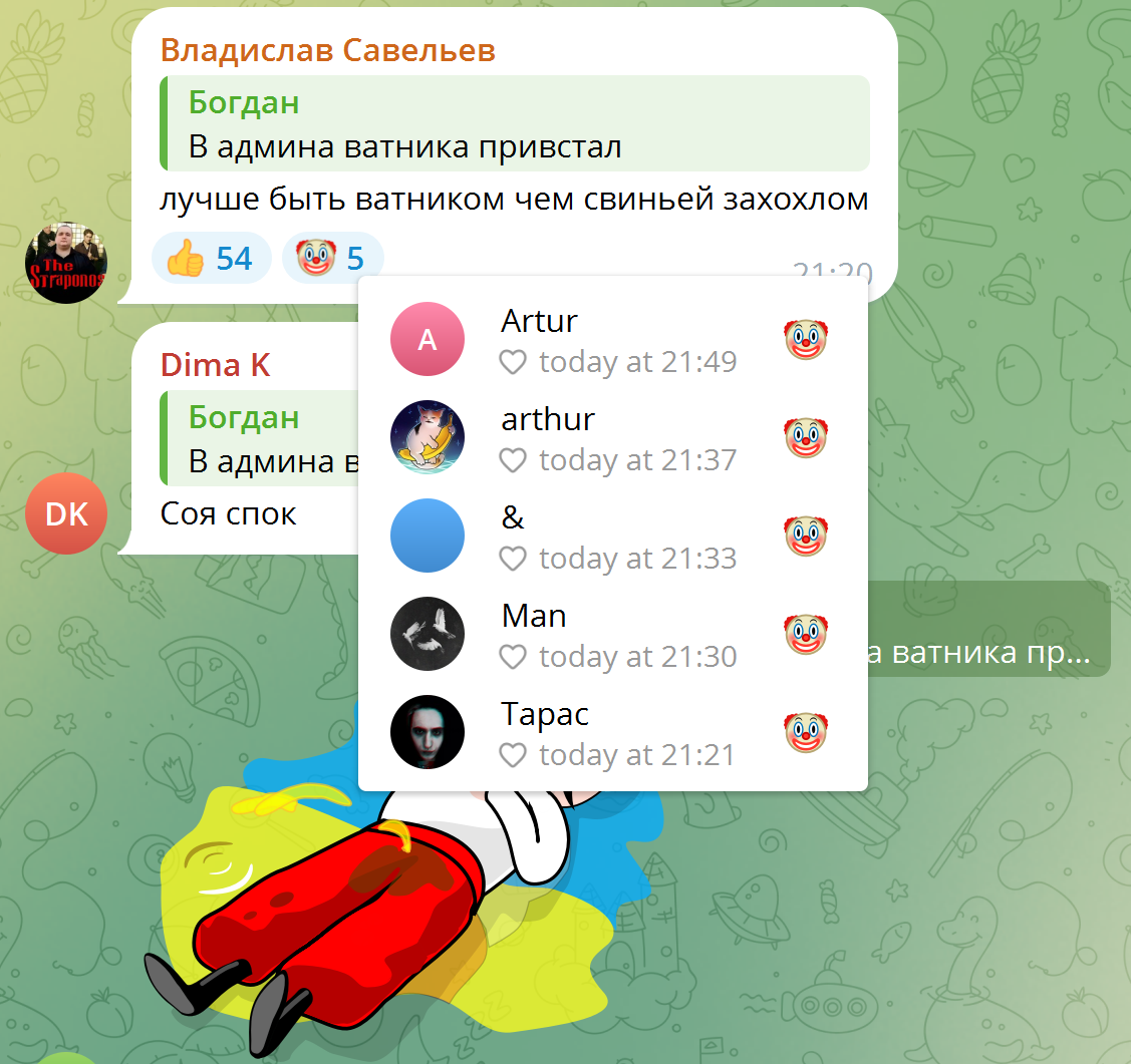 Я благодарен харчку за то, что он познакомил меня с творчеством Биточка! Теперь смотрю его ролики, и уже задонатил ему 5к сегодня. А вы и дальше симпуйте по гнилому фурункулу