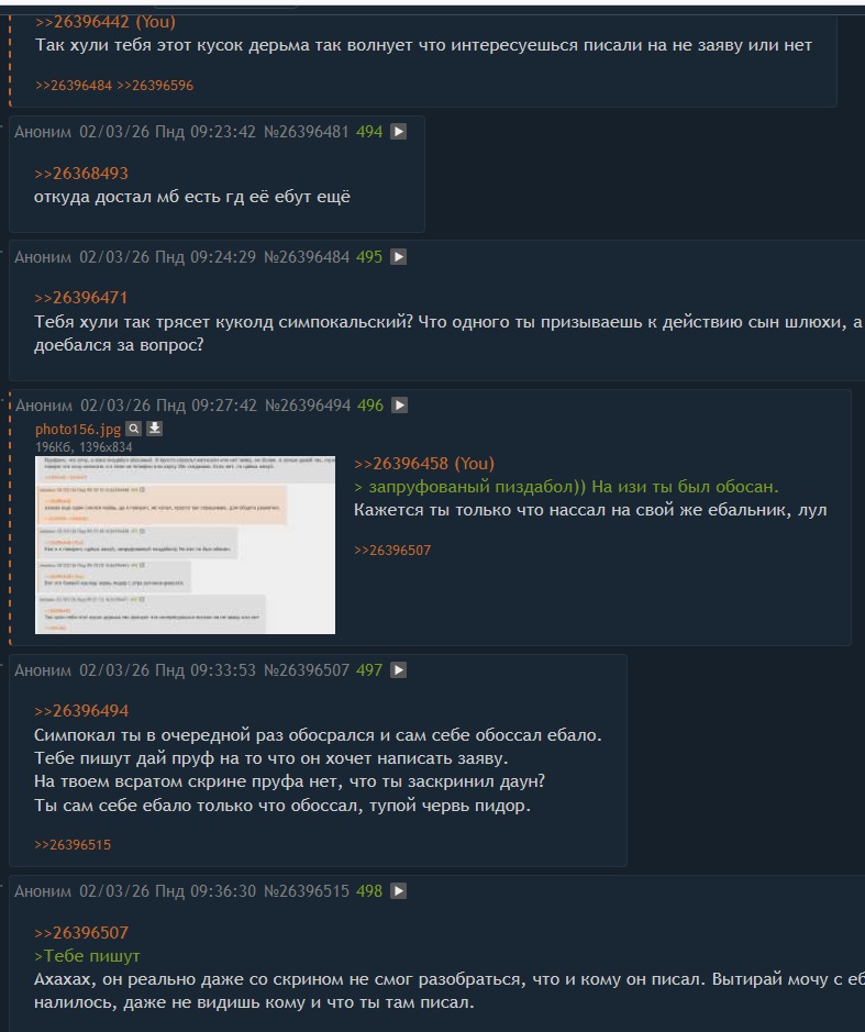 >>26396494 → >>26396535 → Правильно тебе всё пояснили , что ты обосаное дважды и запруфованый пиздабол. Ты разным анонам пишешь и в обоих случаях обсираешся.