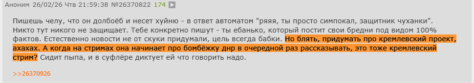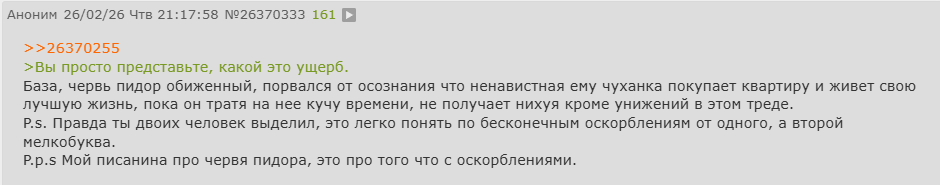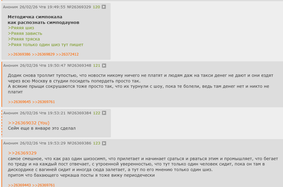 Думал что этот тред нужен для поддержания популярности Маленькой, и всех ее знакомых стримеров. Было интересно как это работает, пытался понять кто сюда пишет и почему. Старался не писать и не нарушать устоявшийся баланс, только тогда когда манипуляция была совсем уж явной. Но оказалось что тут сообщество душевнобольных людей, что не смогли разобраться в своих чувствах к ней и не нашли ничего лучше чем писать сюда гадости, и посвятить этому достаточно много времени.