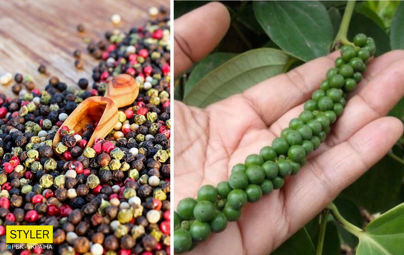 дело в том, что чёрный перец производят из горошкового перца, его собирают зелёным, потом сушат, становится чёрным, перемалывают и перчат это наверно многие знали