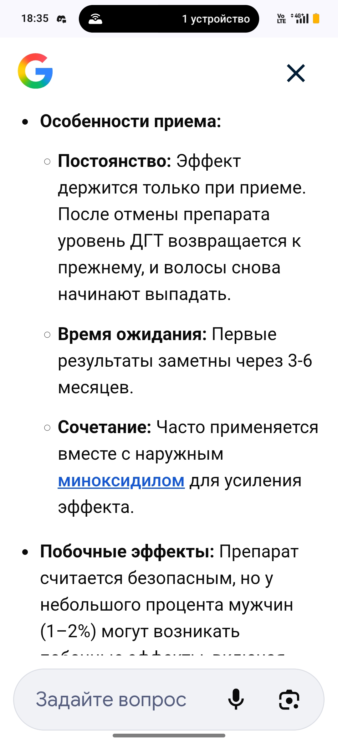 Скинь мне не выдуманные показания к применению, где написано про облысение. Я тебя не понимаю. Если это препарат от облысения, то где это в показаниях?