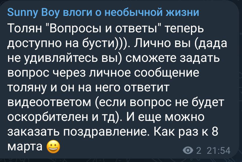 С одной стороны круто когда возможность общаться с толяном есть, как у Димы ДЦП и намкода, я бы ему даже отвечал на его новую шизу каждый день про даньку. Но жирный минус что он начнёт деньги клянчить.