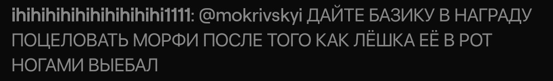Симпы Морфилины, теперь ваша участь трястись и терпеть эмоциональные качели жида в сторону вашей малышки. Будете день ныть, день радоваться и так по кругу. Но итог все знают, ссора и дроп