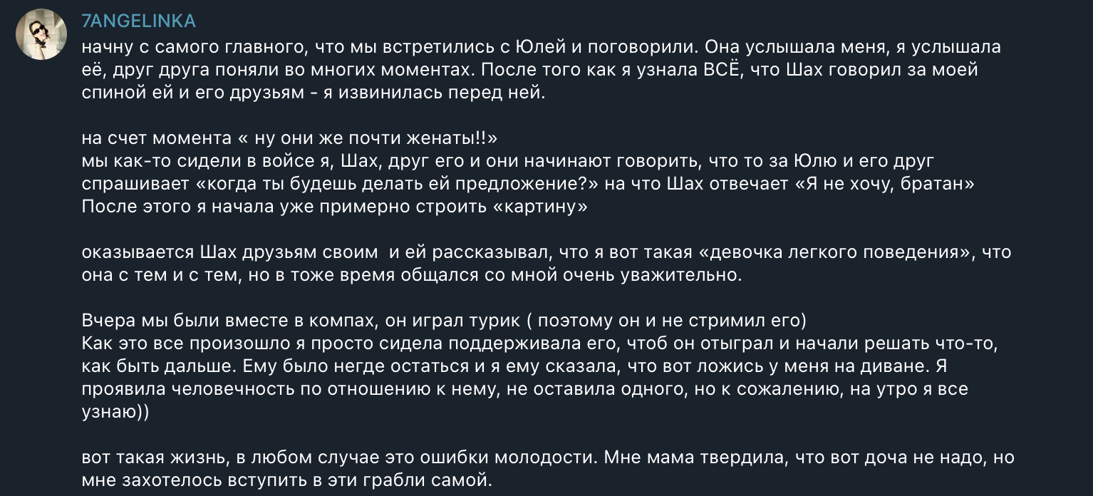 С другой: осталась зачем-то в сербии без стримов, осталась ночью вдвоем на 14 февраля, мило общаются в дс каждый день(шадоукек не даст соврать, с облизыванием глазок), сидит на каждом стриме с улыбкой до ушей