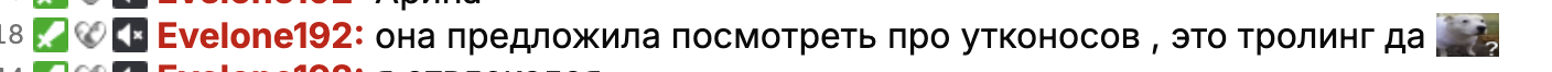 >>26409951 тренится ему, а не ей она в кс даже не заходит и не зашла разве что она мурчит пока он дм играет, но думаю прочто что-то смотрят. Он же писал в чате что-то про утконосов