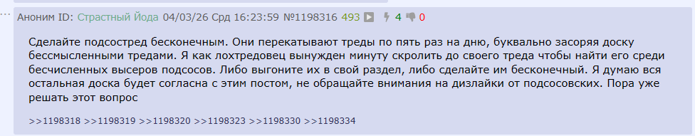 Бесконечный тред прогонит всех хуесосов на зарплате стримерш, сразу пропадут всякие веронифки и ненормовы, потому что реклама будет смываться за день. Это никому не выгодно